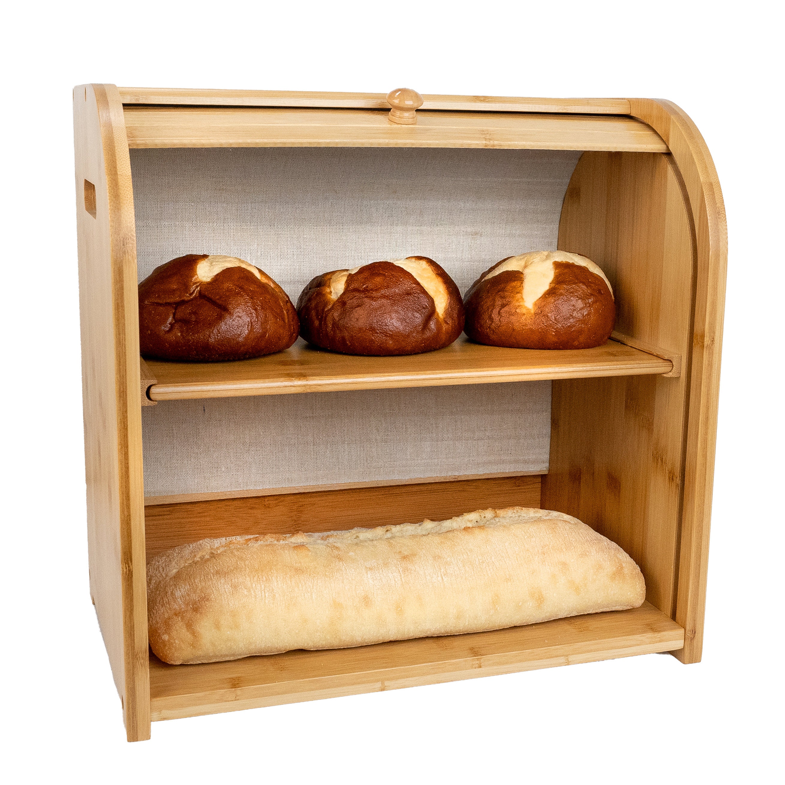 Buy Bamboo Bread Box Finew Double Layer Rolltop Bread Bin For Kitchen Countertop Large Wooden Countertop Bread Storage Holder With Removable Shelf And Toaster Tong 15 X 9 8 X 14 5 Self Assembly