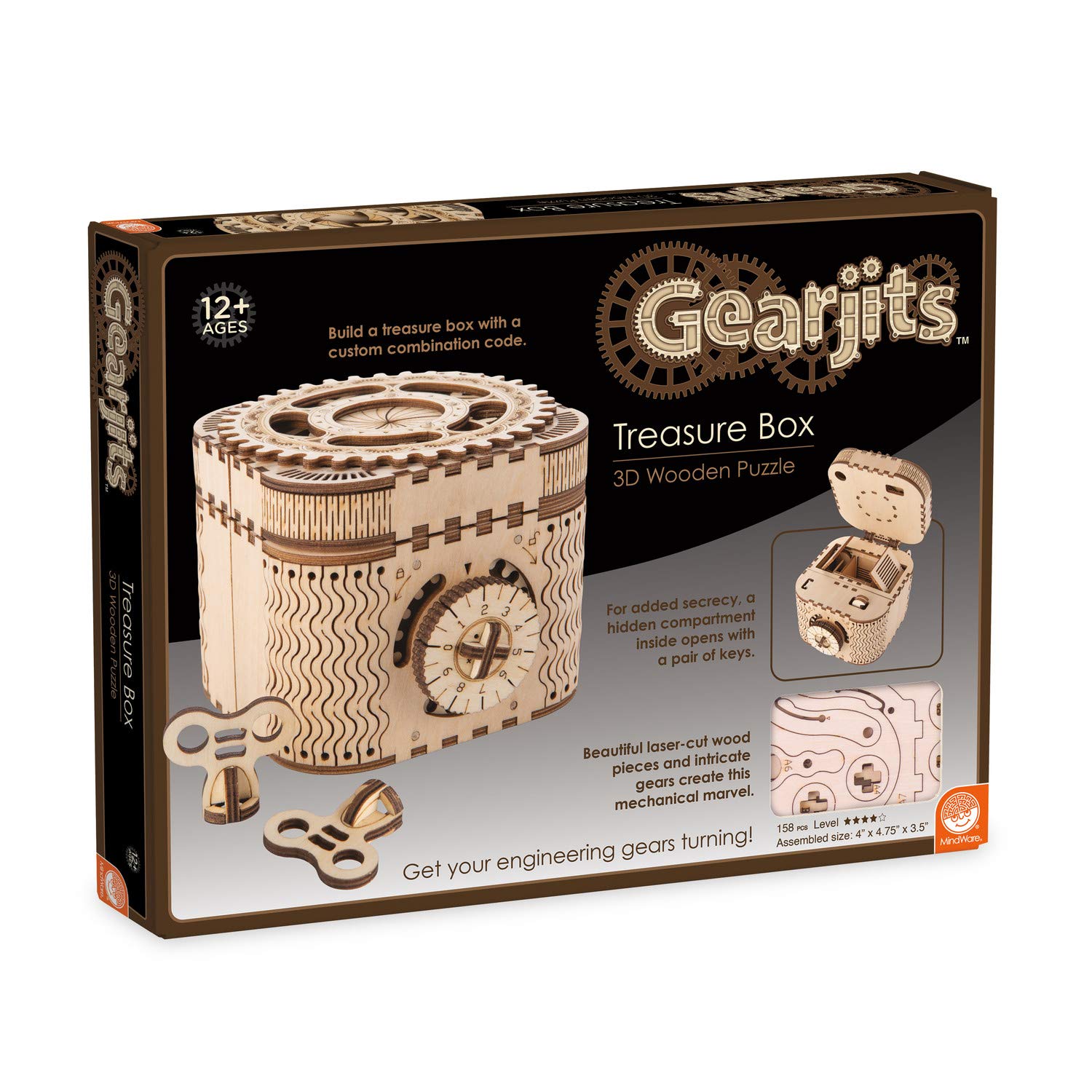 Amazon Com Mindware Gearjits Treasure Box 158pc Wooden 3d Building Puzzle For Teens Adults Diy Construction Model Fun For Parents Too Great Steam Gifts For Ages 12 Toys Games